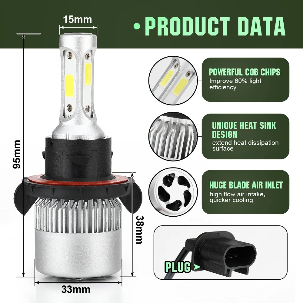 High / Low beam : H4 H13 9007With 3 Sides COB LED Bulbs.