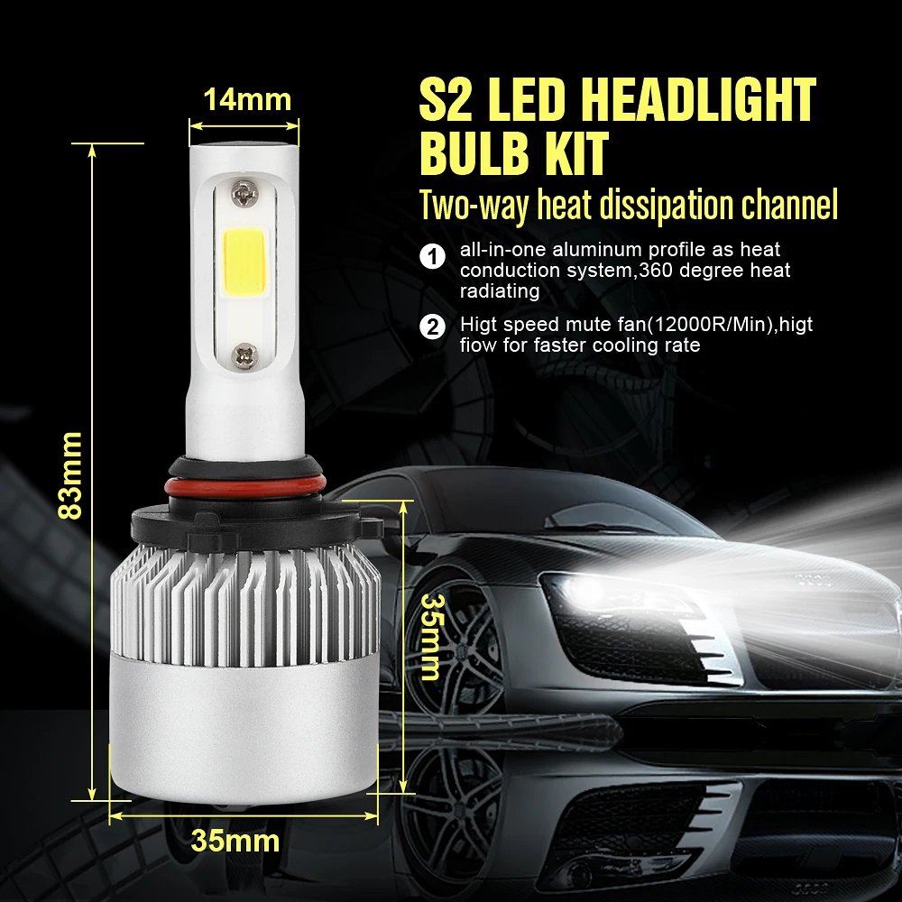 2Pcs/Set LED H1 H3 H7 H4 H13 H11 9004 880 9007 Auto S2 Car Headlight Bulbs 72W 8000LM 6500K for 9V to 36V 200M lighting range