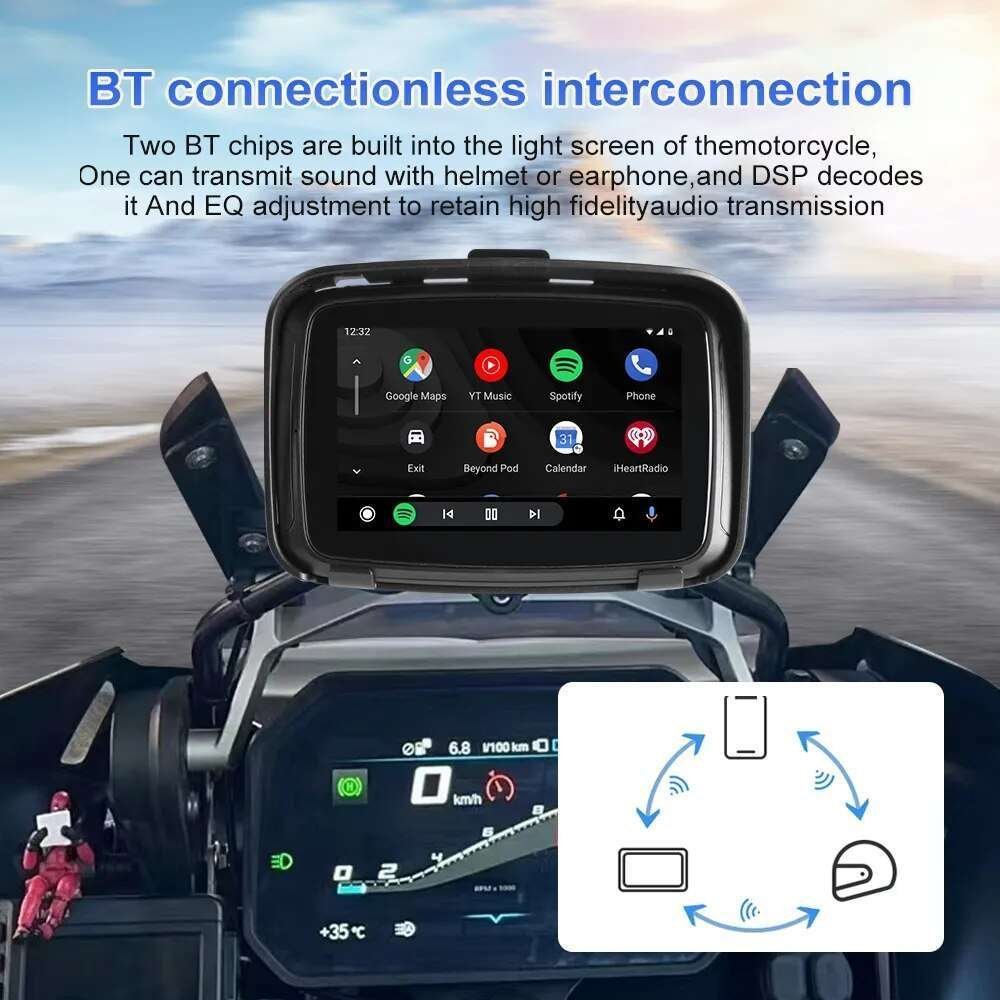 5 inch Monitor for Motorcycle with Wireless Apple Carplay Android Auto Portable Motorbike IPX7 Waterproof GPS