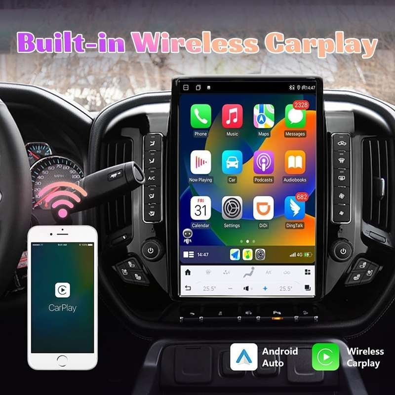 Android Car Head Unit for Chevrolet Silverado GMC Sierra 2014-2019 T-style with Wireless CarPlay and Android Auto