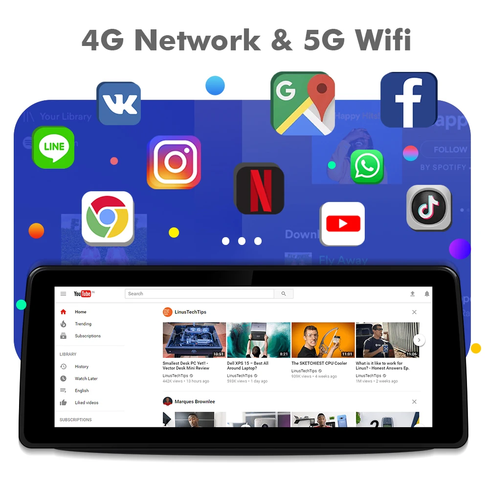 Support On-line music, video, radio, navigation, such as: Spotify, Youtube, Netflix, maps…