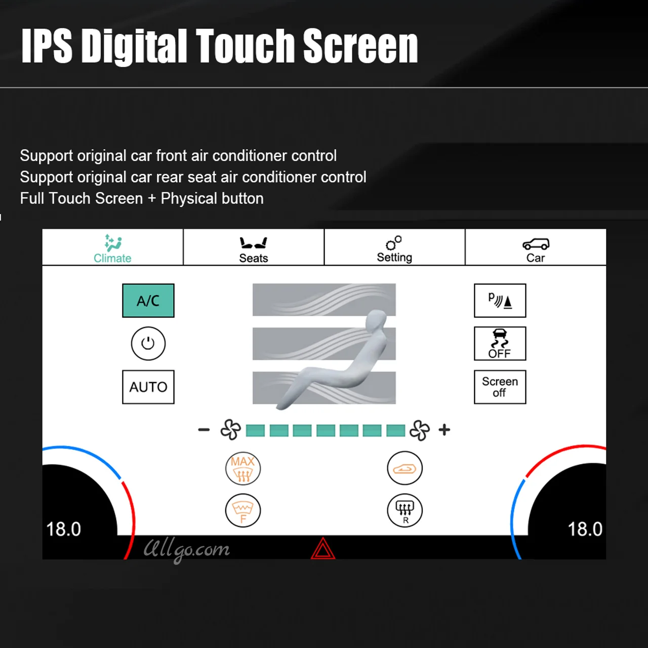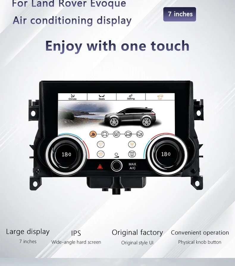 This product is a must for the vehicle. Upgrade the factory air conditioning panel but a modern IPS touch screen version. With its IPS high definition touch screen which also features manual dials, you can easily control temperature, cooling, heating, seat heating, rear view mirror heating, front and rear windshield defogging.