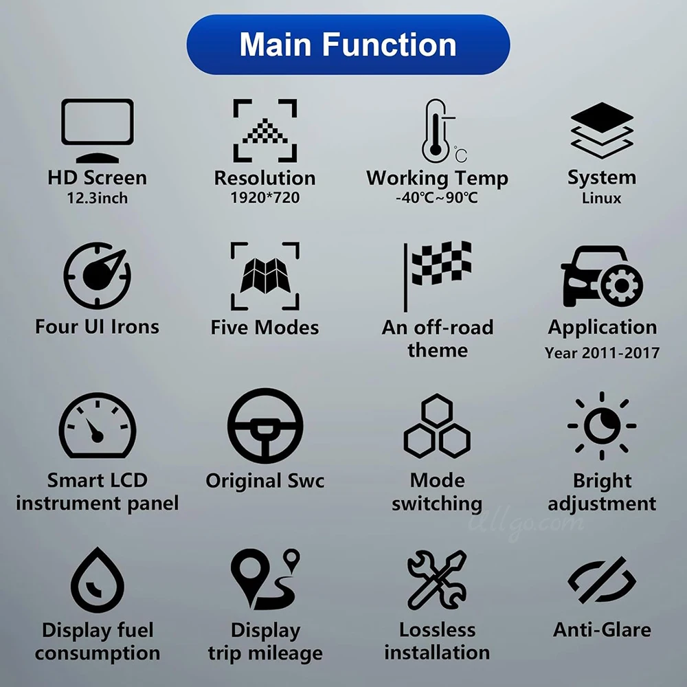 - Support original Miles/KM/Tire Pressure/Oil/water temperature, oil pressure, fuel consumption, etc.