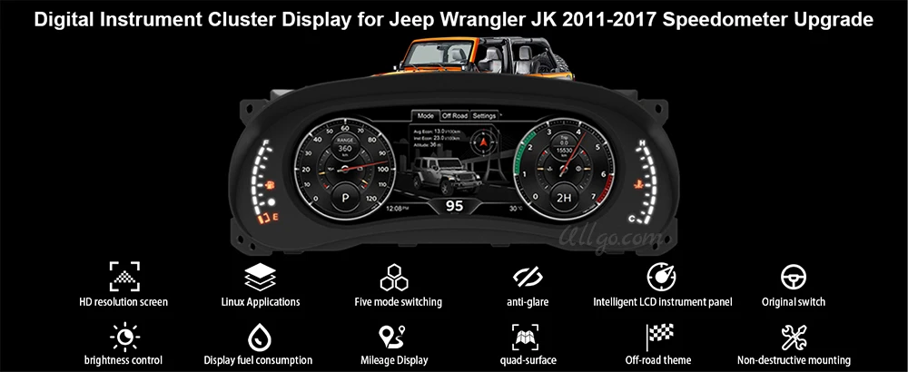 Digital LCD Cluster for Jeep Wrangler 2007-2023 Linux Virtual SpeedOmeter