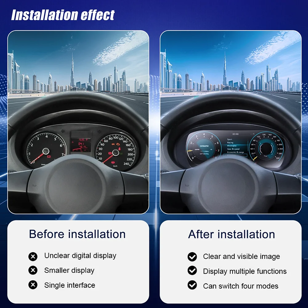 1. It need installation and need put your car original instrument cluster mother board into Digital one.