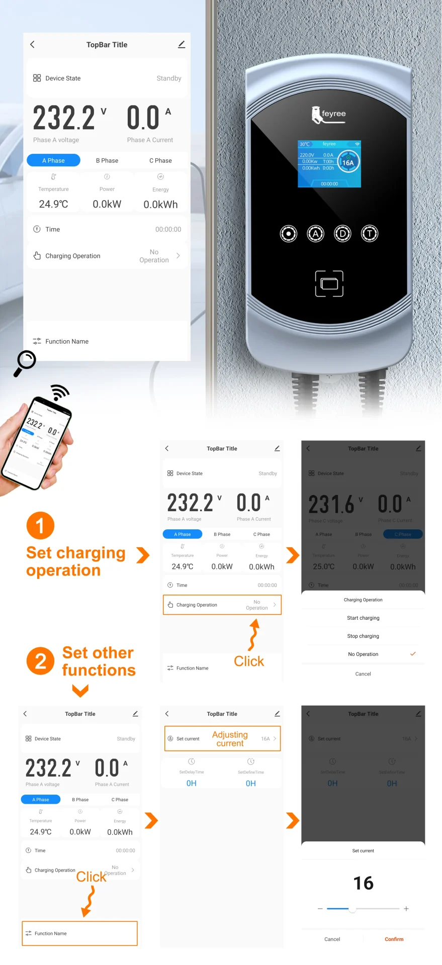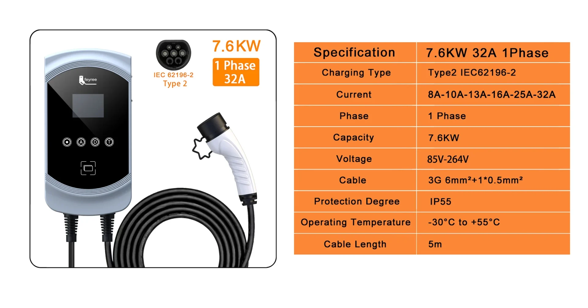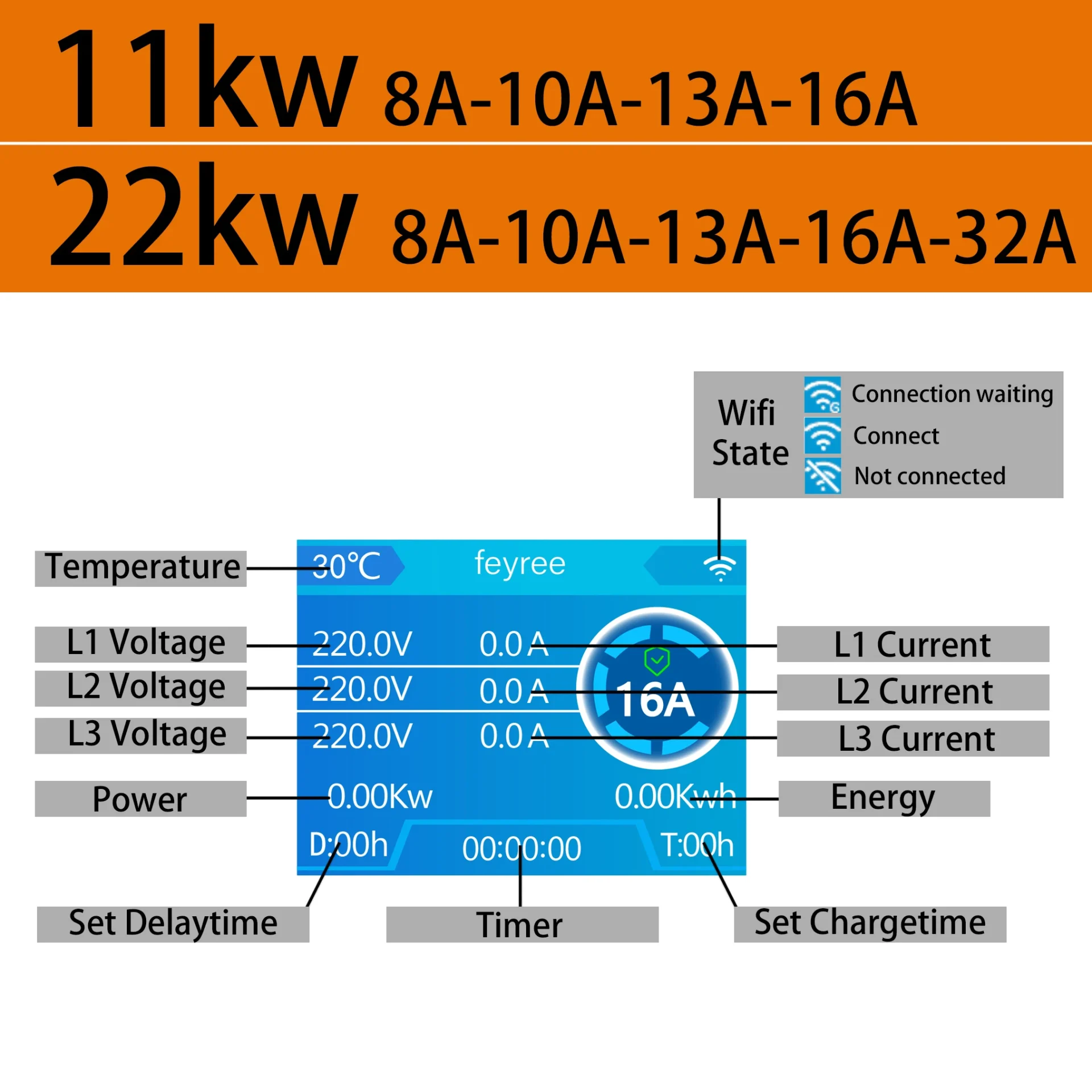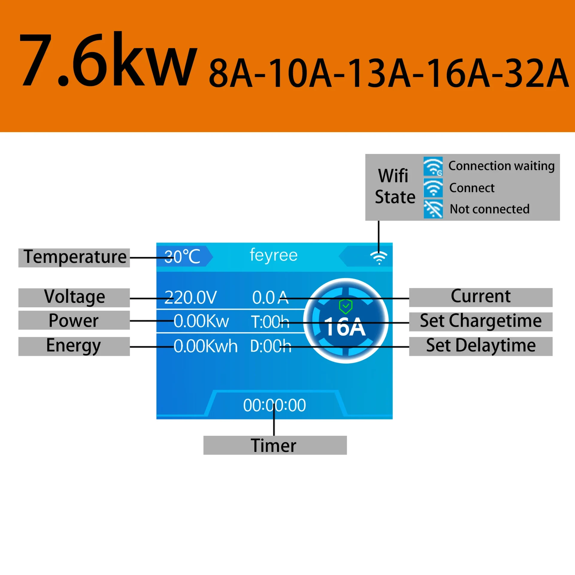 - Change the current: 8A/10A/13A/16A/32A adjustable