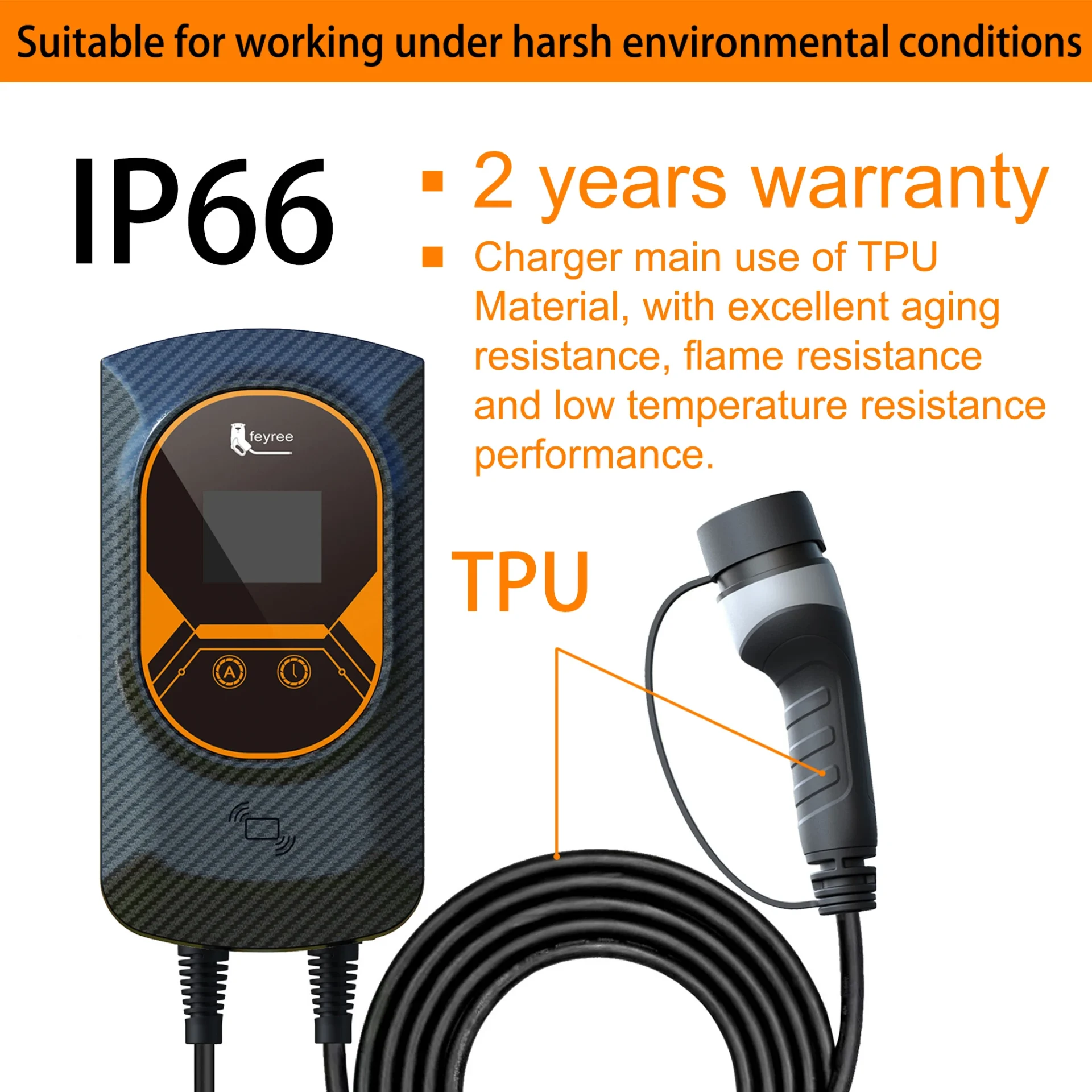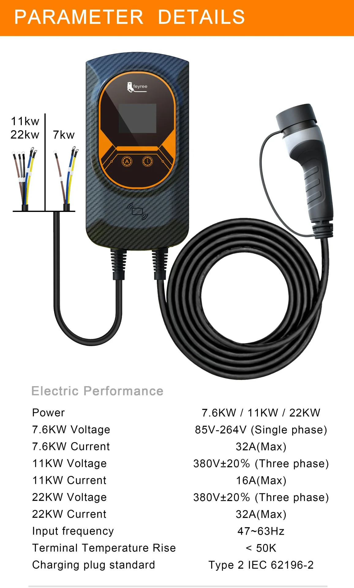 EV Charging Station 32A Electric Vehicle Car Charger EVSE Wallbox Wallmount 7.6/11/22KW Type2 Cable IEC62196 APP Control