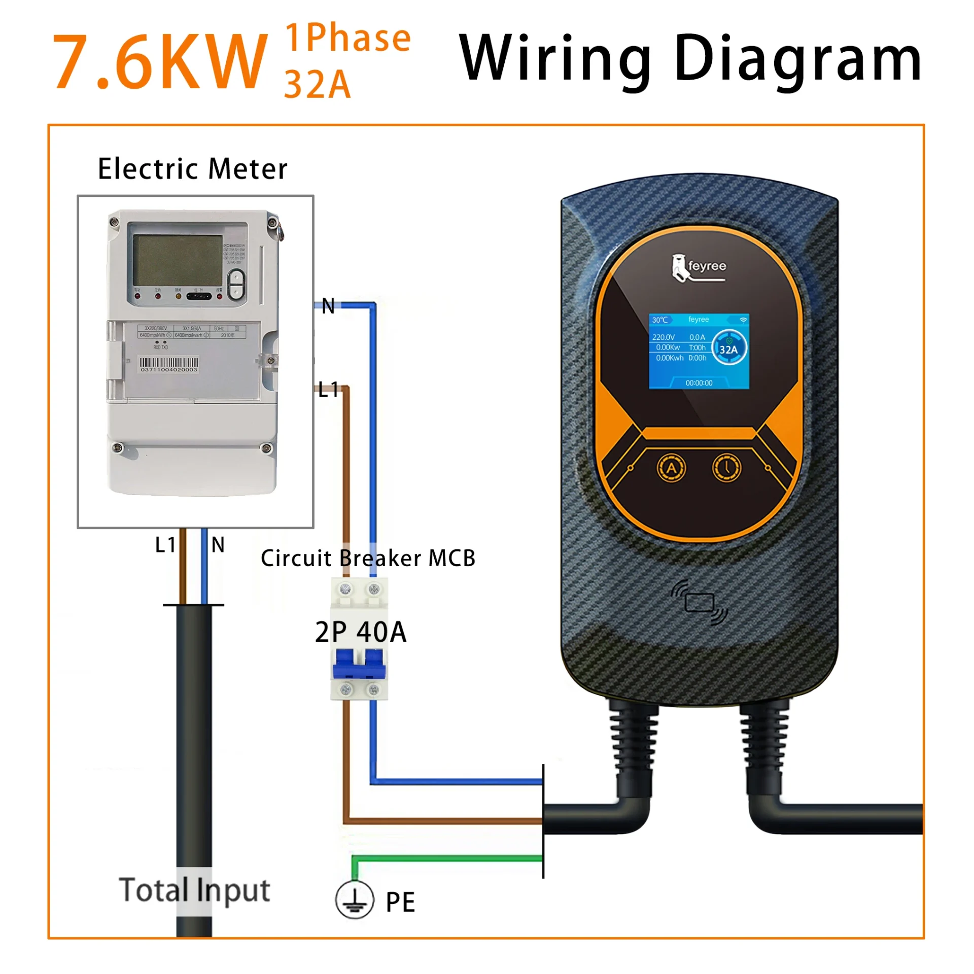 - Change the current: 8A/10A/13A/16A/32A adjustable