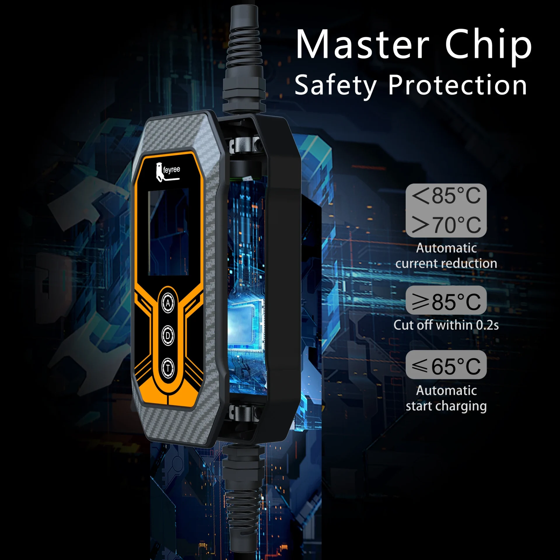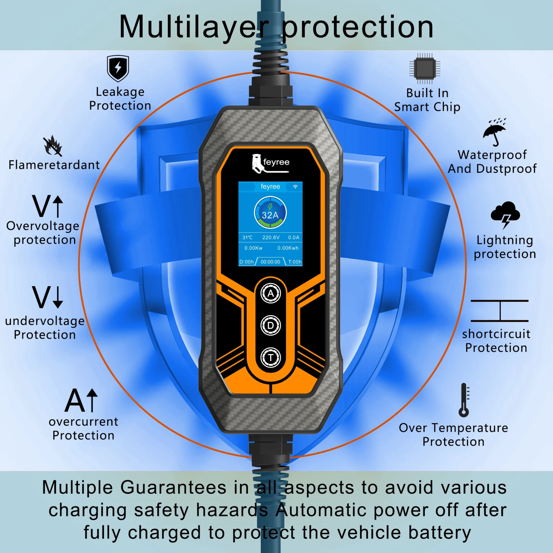 - 【CHARGING FASTER】: This EV charger has the adjustable current, to reach a max output power up to 7KW or 11KW. Making EV car charging faster! (Note: The actual charging time of an electric car comes down to the following two: the power source and the vehicle’s on board charger capacity.)