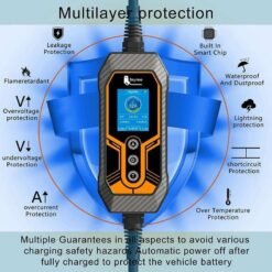 - 【SAFE & RELIABLE】: Safety is a top priority for us when it comes to charging the electric vehicles. Our EV charger is designed with multiple protection systems such as, lightning-proof, leakage protection(TypeB AC30mA+DC6mA) , over-voltage, overheat protection, over-current protection, ground protection, and more. The cable is made of high-grade, rugged TPE materials, and the connector features IP66 waterproof & dust-proof protection to make this home EV charger safer and more reliable.