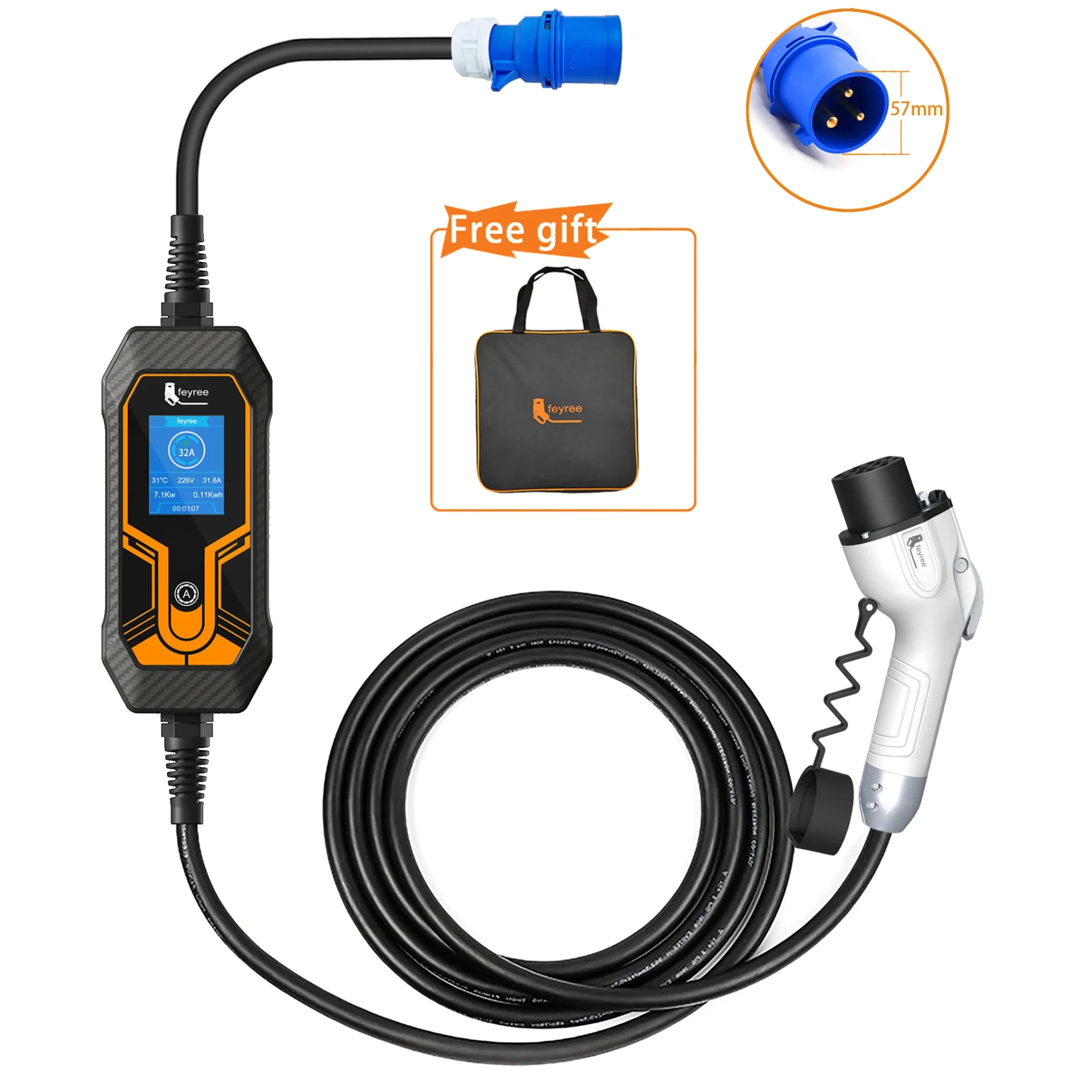 - Smart Control: Smart Chip remembers your preferred settings. Once you select your car’s recommended current from 8A, 10A, 13A, 16A, 25A or 32A, the unit will automatically set the same level for your next charge.