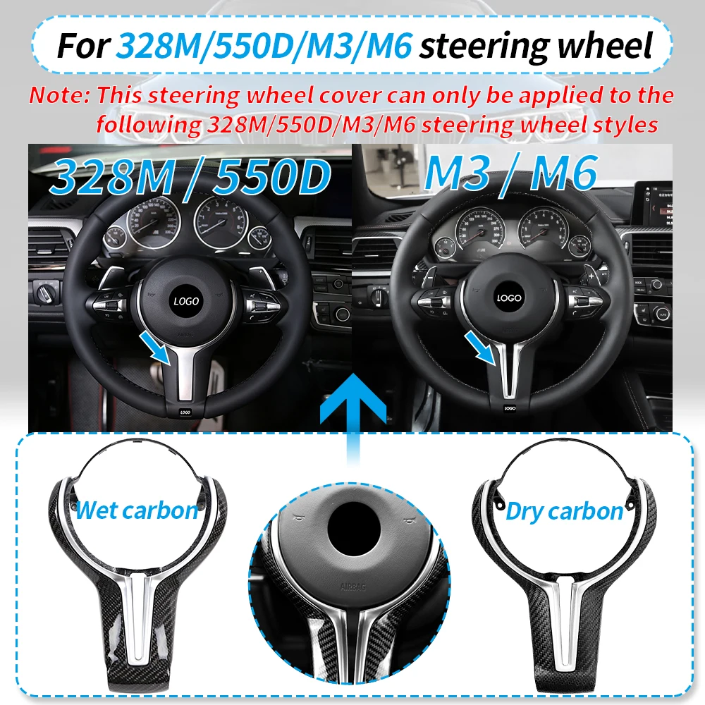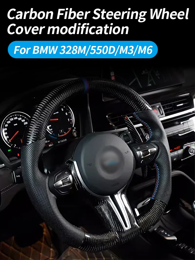 Carbon Fiber Steering wheel Cover For BMW F30 F10 F18 F20 F25 F34 F48 M3 M6 550D 328M 1 2 3 4 5 6 7 Series