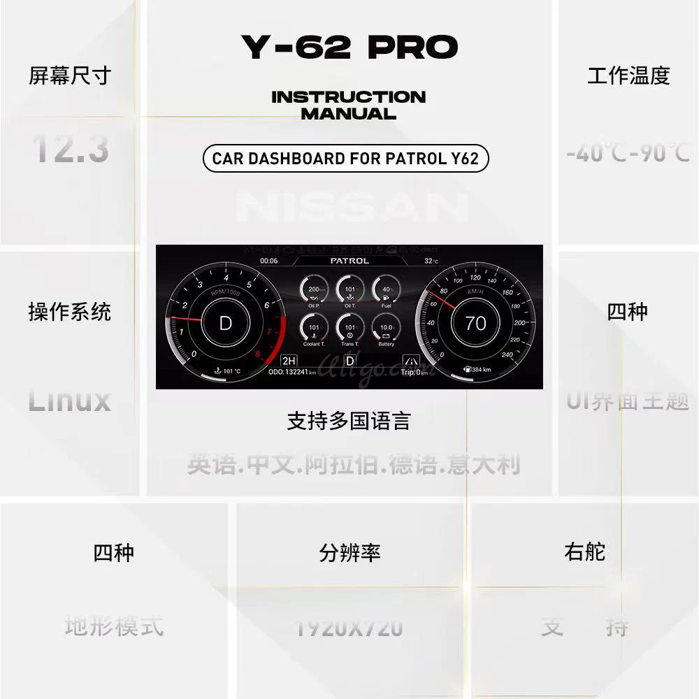 Digital Cluster for Nissan Patrol Y62 Armada/ Infiniti QX80 2010-2021 Virtual Speedometer