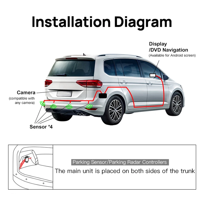 Visiable Parking sensor with RCA Video Output 4 Sensors Multi-color Optional