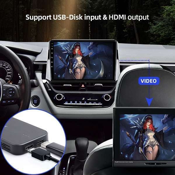 Only R3/R3-G carplay ai box can support that functdion ,can suport to play music and video with usb,and share video to Headrest Monitor too via HDMI