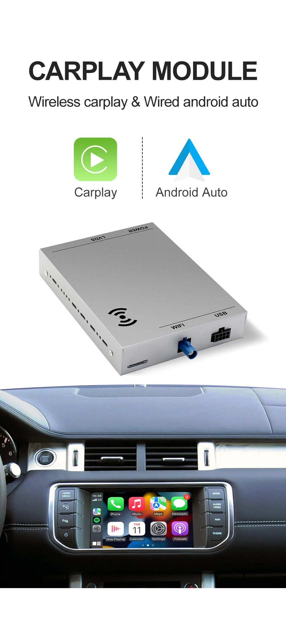 Wireless Carplay Android Auto Box for Jaguar XE XF Range Rover Evoque Discovery 4